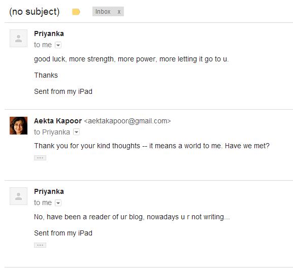 I was bowled over. What were the chances of a random mail like this from a total stranger at the very moment I needed to read it? If this wasn’t a sign from the Universe, from my Krishna, I don’t know what was. (Heartfelt gratitude to reader Priyanka. You’re my angel.)